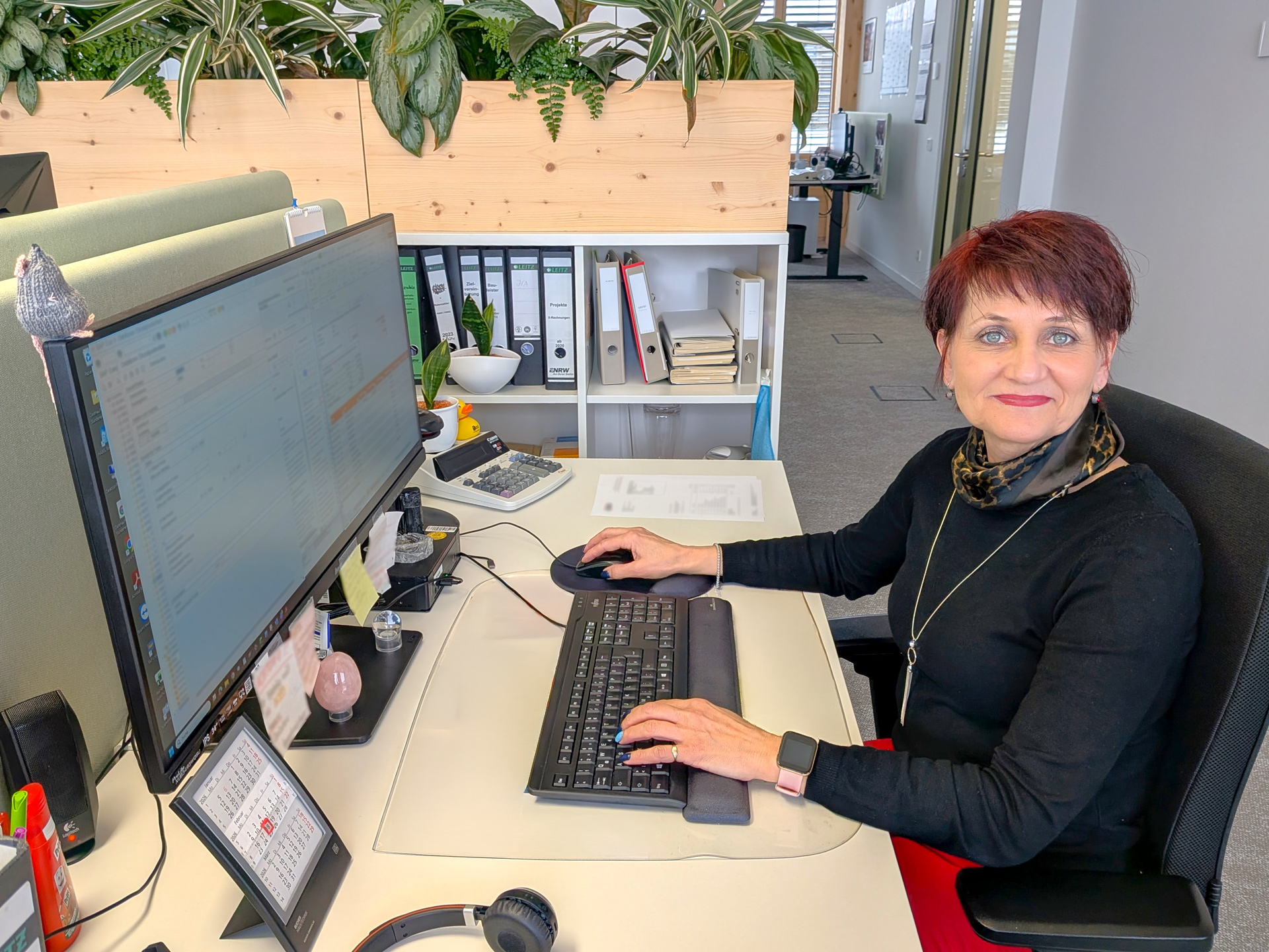 Seit 25 Jahren ist Tanja Banzhaf teil der ENRW. Sie gehört zum Team der Debitorenbuchhaltung, das unter anderem für die Auftragsabrechnung zuständig ist. Sie erstellt Rechnungen und prüft Kosten.