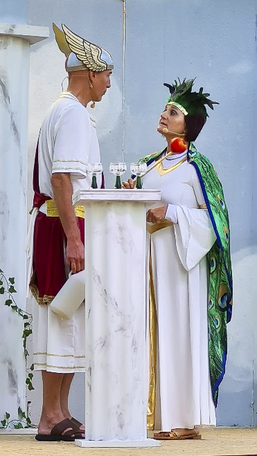 Tanja Banzhaf als Hera im Stück „Aufstand im Olymp“ auf der Denkinger Freichlichtbühne. (rechts)