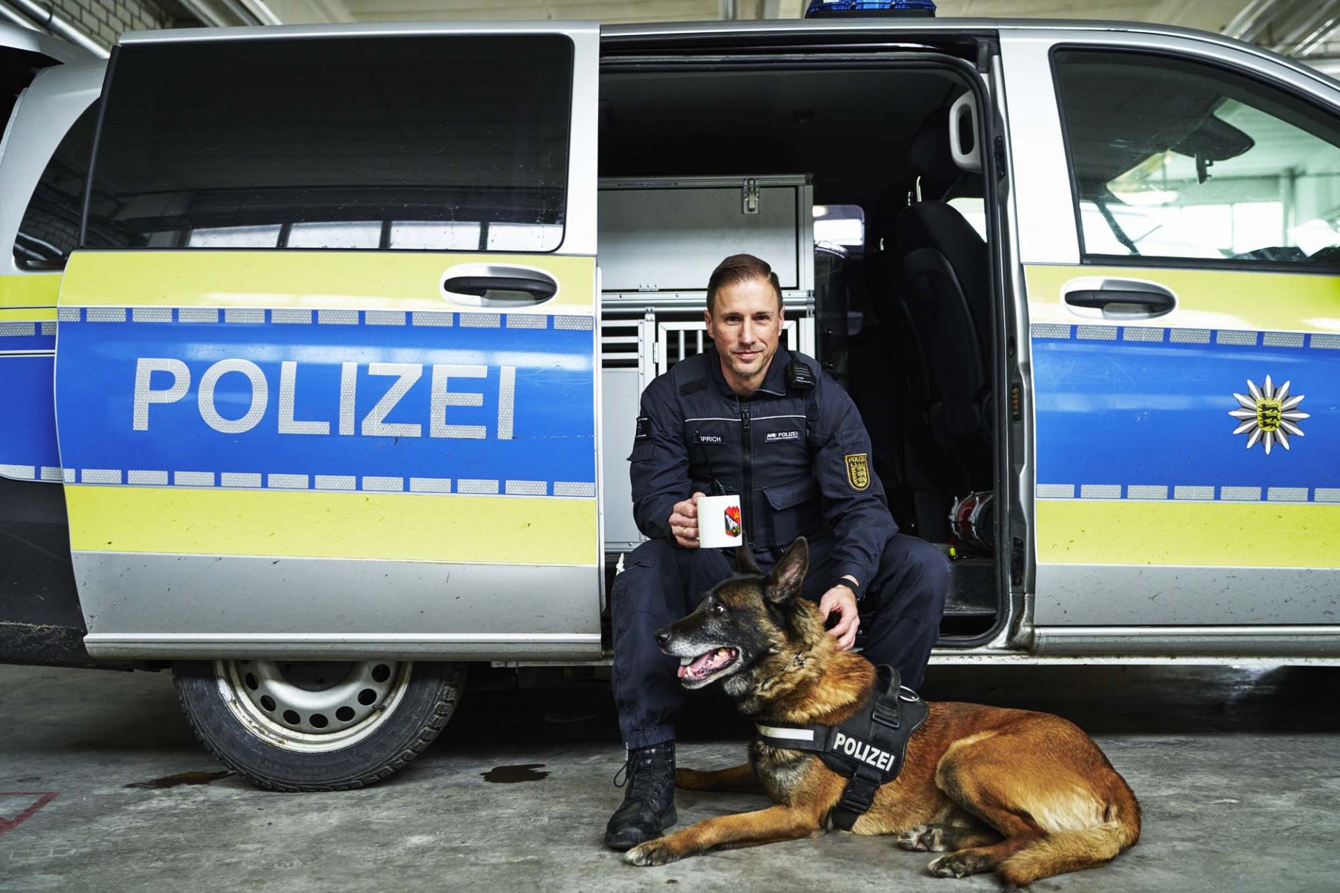 Ikarus ist ein belgischer Schäferhund, sieben Jahre alt und rund 35 Kilogramm schwer. Während der Dienstzeit bekommt er grundsätzlich kein Futter, da die erforderliche Verdauungspause nicht gewährleistet werden kann: „Ich füttere den Hund abends, danach kann er sich ausruhen“, erklärt Daniel. Anders sieht es mit dem Gassi gehen aus. Mehrmals täglich dreht der 45-Jährige mit Ikarus eine Runde. Abends und am Wochenende lebt der landeseigene Vierbeiner in der Familie des Polizeikommissars und ist „ein ganz normaler Hund“.
