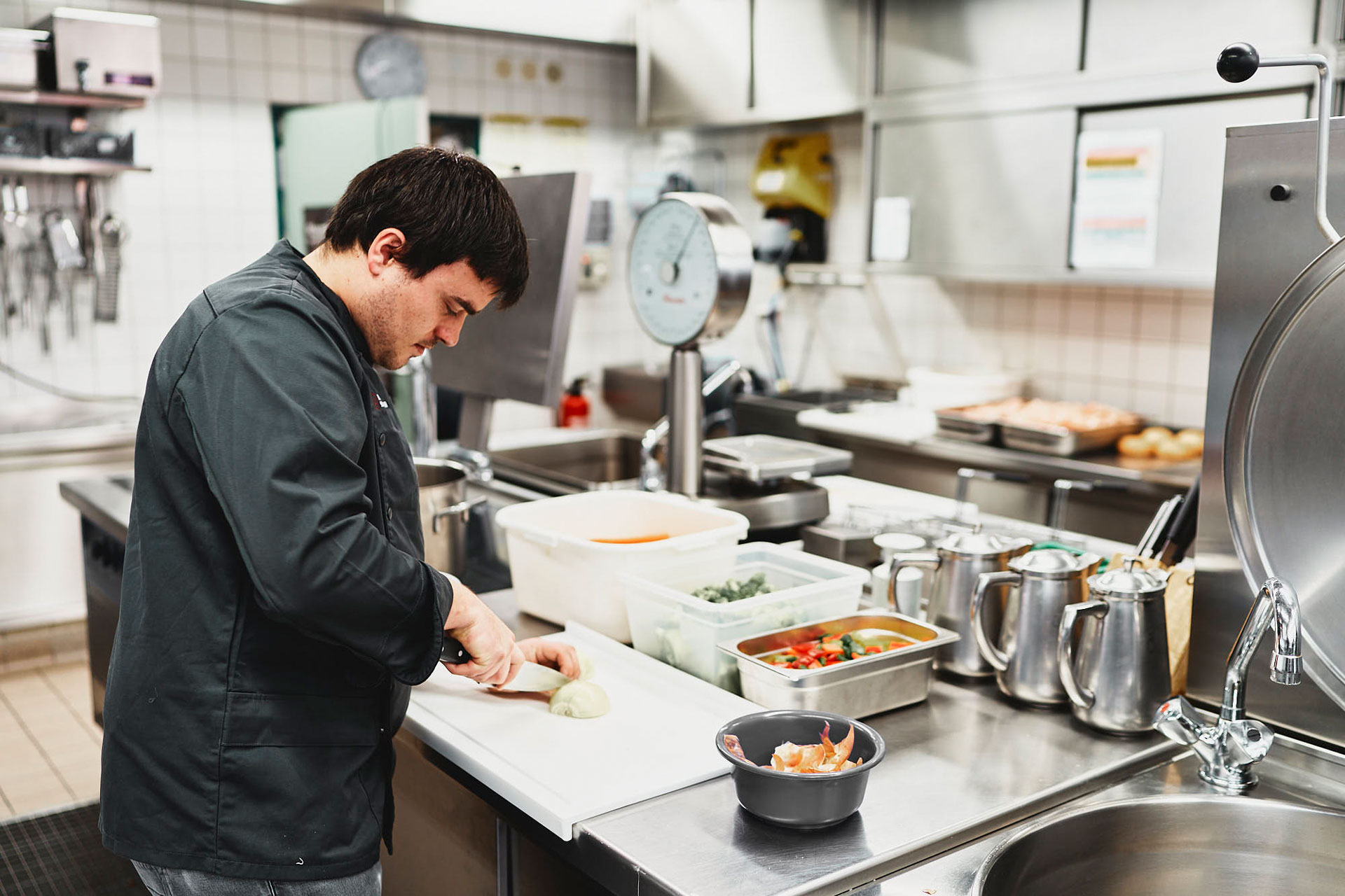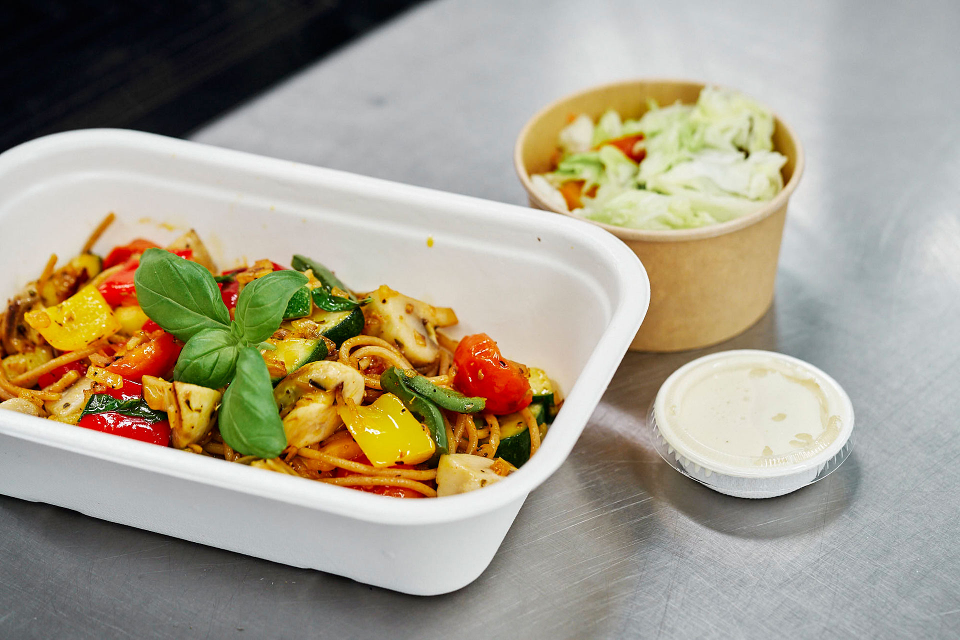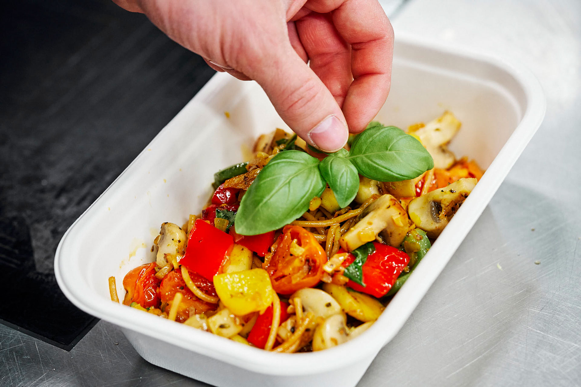 Um das täglich frisch gekochte Essen garantiert heiß auszuliefern, wurden die Zielorte auf Rottweil, Zimmern o. R., Dietingen – alle mit Teilorten –, Deißlingen, Lauffen, Denkingen, Frittlingen und Villingendorf beschränkt. Wer hier wohnt oder arbeitet, kann sich bis 20 Uhr am Vortag online ein Mittagessen bestellen. Für Menschen ohne Internetzugang ist eine telefonische Bestellhotline eingerichtet. Täglich stehen zwei Menüs zur Auswahl: eines mit Fleisch oder Fisch (7,50 Euro) und eine vegetarische Alternative (6,50 Euro). Darüber hinaus gibt es sonntags als Zusatzangebot Suppe, Salat und Dessert. Auch das Thema „Nachhaltigkeit“ war Philipp Schneider wichtig: „Die Mahlzeiten werden durchweg in biologisch abbaubaren Einmalverpackungen ausgeliefert.“