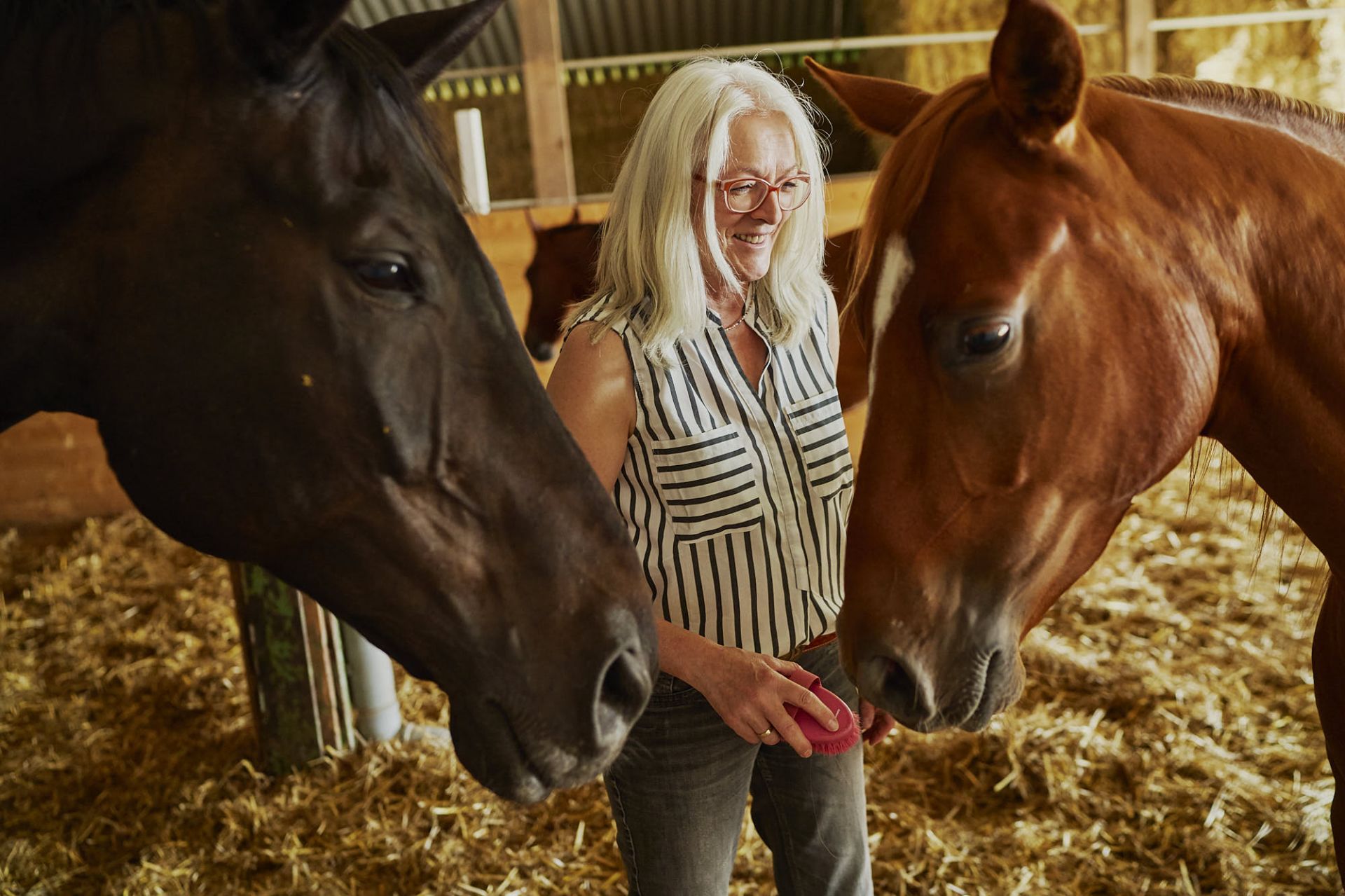 „Alles Glück dieser Erde liegt auf dem Rücken der Pferde“ – egal wie überstrapaziert diese Redewendung ist, bei Simone Linder passt sie wie die Faust aufs Auge. Seit rund 50 Jahren dreht sich bei der Kauffrau nicht alles, aber vieles um die anmutigen Vierbeiner. Die ersten fünf Lebensjahre verbringt sie auf einem Bauernhof in Niedereschach-Kappel zusammen mit einem Bernhardiner, Kühen, Hühnern und weiterem Kleinvieh: „Vermutlich hat mich diese Zeit nachhaltig geprägt.“ Die Liebe zur Natur und zu Tieren besteht für die 60-Jährige bis heute. In logischer Konsequenz kann sie dem Leben in einer größeren Stadt gar nichts abgewinnen: „Ich habe eine Zeit lang in Freiburg gewohnt, es aber nicht lange ausgehalten.“
