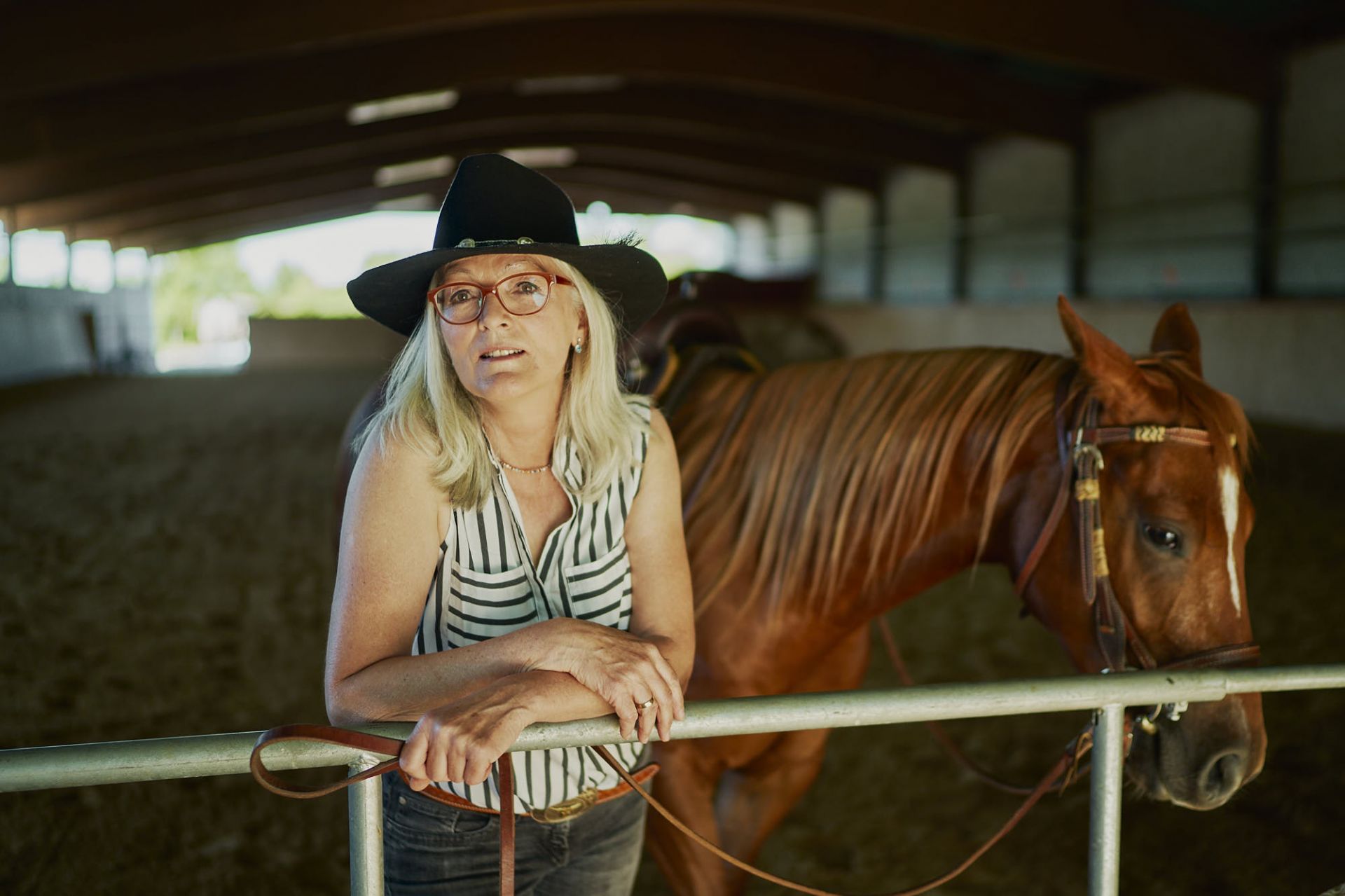 Seit 17 Jahren arbeitet die Pferdeexpertin bei der Energieversorgung Rottweil (ENRW) als kaufmännische Angestellte, besitzt mittlerweile zusammen mit ihrem Mann drei Quarterhorse und reitet diese rund fünf Mal pro Woche: „Es ist schon ein sehr aus- und abendfüllendes Hobby“, erklärt die 60-Jährige lächelnd. Brenda, Glenn und Yukon leben in einem Aktiv-Laufstall auf dem Gelände der Pferdepension Rapp in Eschbronn-Locherhof: „Meiner Erfahrung nach sind Pferde, die nicht in Boxen untergebracht sind, viel ausgeglichener. Pferde sind soziale Wesen, sie spielen viel und das ist bei dieser Haltungsform durchgehend möglich.“