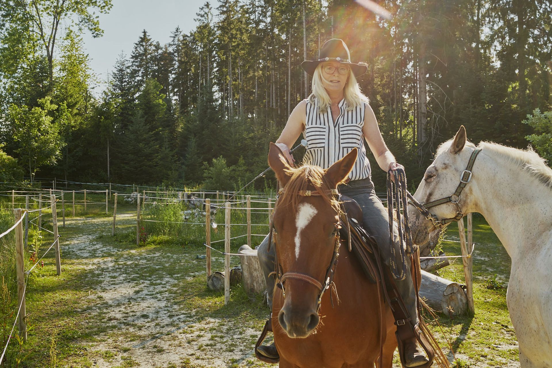 Glenn ist noch jung und wird gerade von Simone Linder ausgebildet. Mit Brenda ist sie schon einige Turniere geritten. Am besten gefallen ihr aber spezielle Kurse mit Rindern: „Die Aufgabe besteht darin, die Rinder in einem ruhigen Tempo von A nach B zu treiben.“ Was sich einfach anhört, erfordert von Ross und Reiter Können sowie ein perfektes Zusammenspiel – ohne echte Begeisterung nur schwer zu lösen. Aber daran mangelt es Simone Linder definitiv nicht, hat sie doch ihr Glück gefunden...