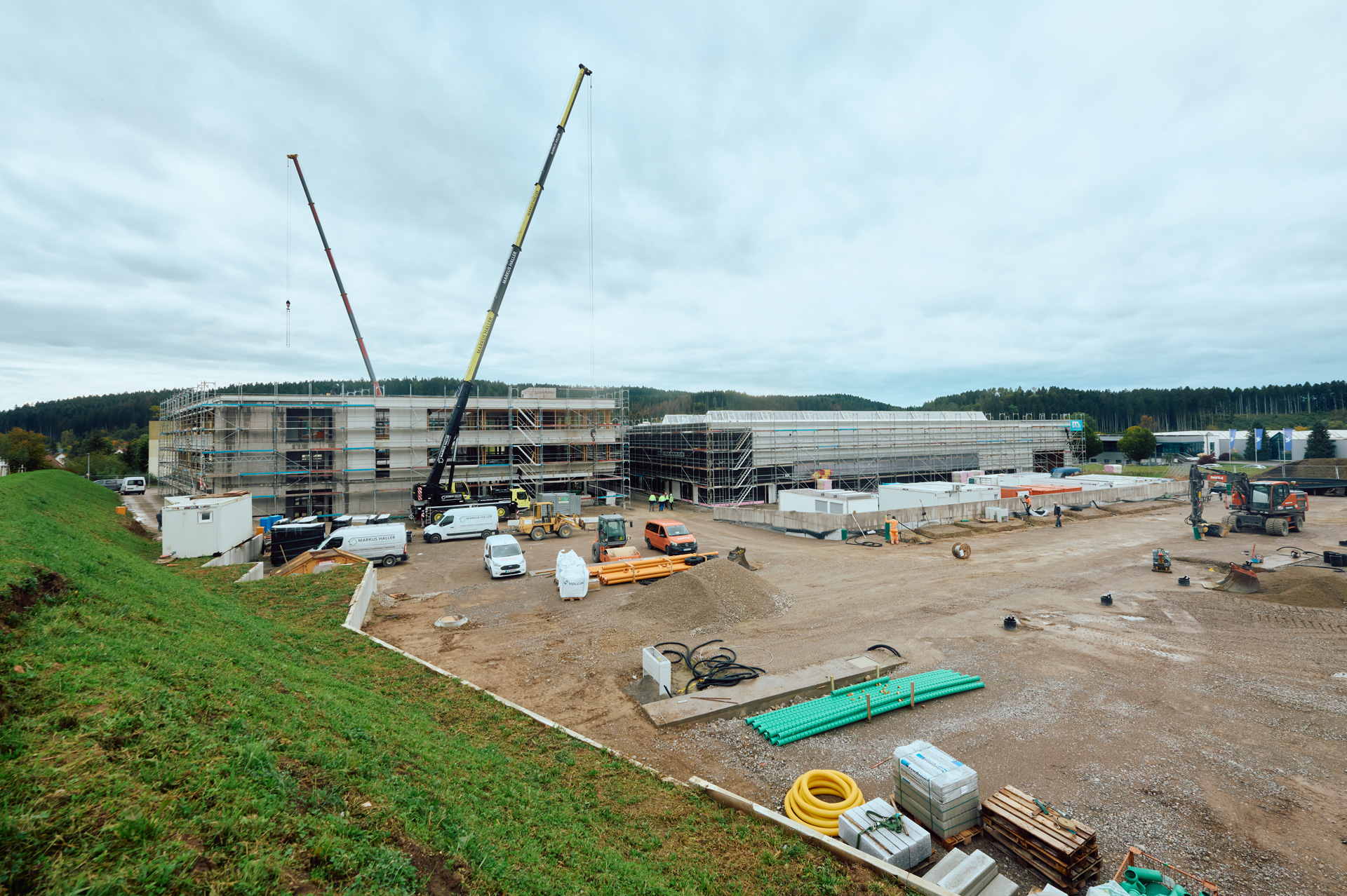 Das zweite Obergeschoss des Verwaltungsgebäudes in Neufra wurde komplett aus Fichtenholz errichtet. Der Neubau wird nach Fertigstellung von der Deutschen Gesellschaft für nachhaltiges Bauen (DGNB) überprüft und zertifiziert. Bei dieser Zertifizierung werden alle Baustoffe auf ihre Nachhaltigkeit hin begutachtet und zugelassen. Außerdem werden nicht nur Aspekte wie beispielsweise die ökologische Bilanz oder die Risiken für die lokale Umwelt berücksichtigt, sondern auch eine verantwortungsbewusste Ressourcengewinnung, Biodiversität vor Ort sowie Arbeitsbedingungen und Aufenthaltsqualität für die Mitarbeitenden.