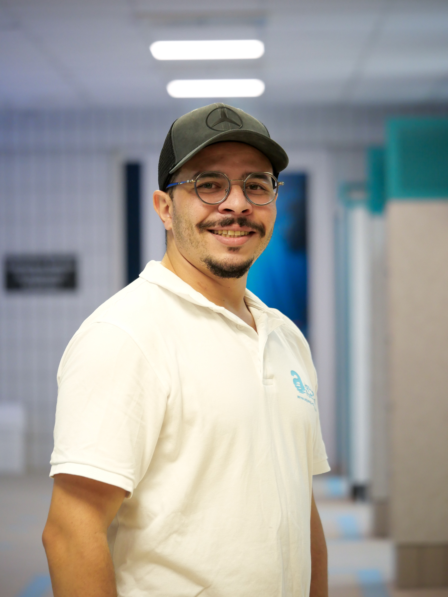 Englisch, Französisch, Deutsch, Arabisch: Viele Sprachen schwirren in Abderrahims Kopf. Dass er erst seit wenigen Monaten in Deutschland lebt, ist kaum zu glauben: Sein Sprachverständnis und seine Ausdrucksweise sind beeindruckend. Sein Weg zur Ausbildung in Deutschland begann mit einer Internetrecherche. „Ich habe auf Google Maps nach Schwimmbädern in Deutschland gesucht. So bin ich auf das aquasol gestoßen“, erzählt er. Die Informationen zur Ausbildung auf der Website überzeugten ihn.