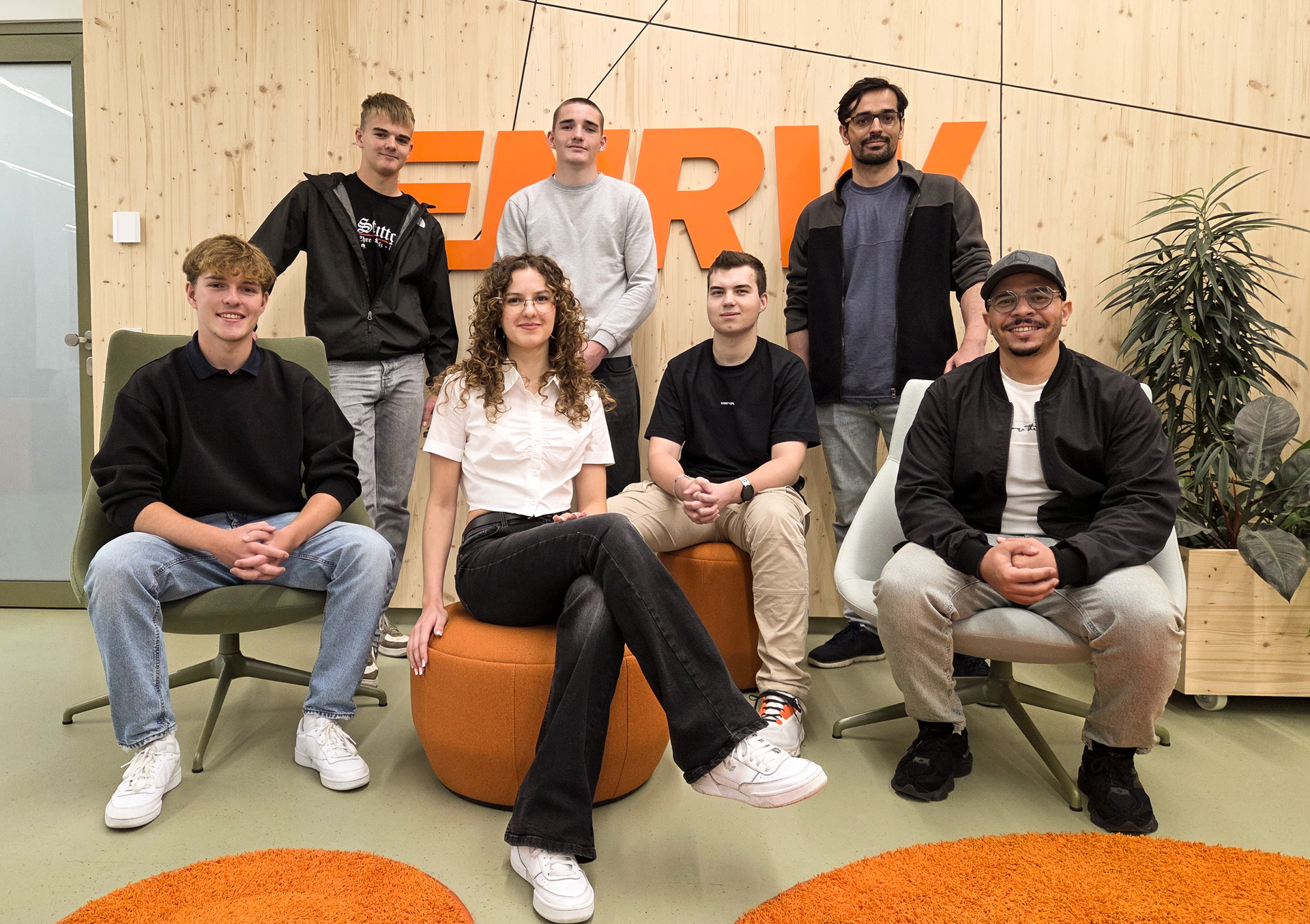 Sieben junge Leute sind im September bei der ENRW gestartet: Paul Dinter, Lukas Poppke, Evelyn Schmidt, Dewitt Werwein, Simon Sanchez Kasper, Kiavash Esmaeili, Abderrahim Tsouli (v. l.).