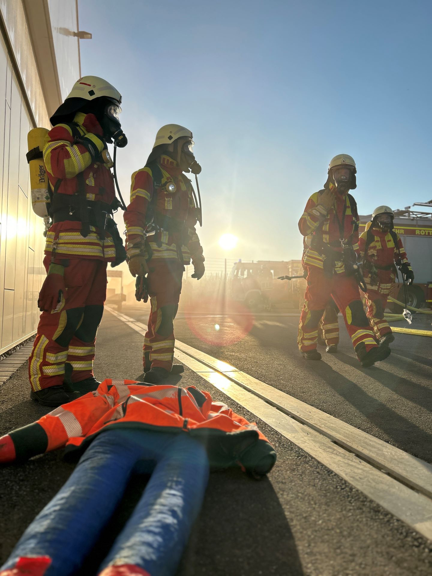 Dichter Rauch, eine dunkle Rauchsäule, ein Brand, der droht, auf das Hallendach überzugreifen – was im Ernstfall höchste Alarmbereitschaft bedeutet, war in diesem Fall Teil einer groß angelegten Übung: Die Löschzüge 1 und 2 der Einsatzabteilung Rottweil, die Einsatzabteilung Neufra, die Atemschutz-Notfall-Trainierte-Staffel und die Führungsgruppe probten im Juli gemeinsam auf dem Betriebsgelände der ENRW den Ernstfall.