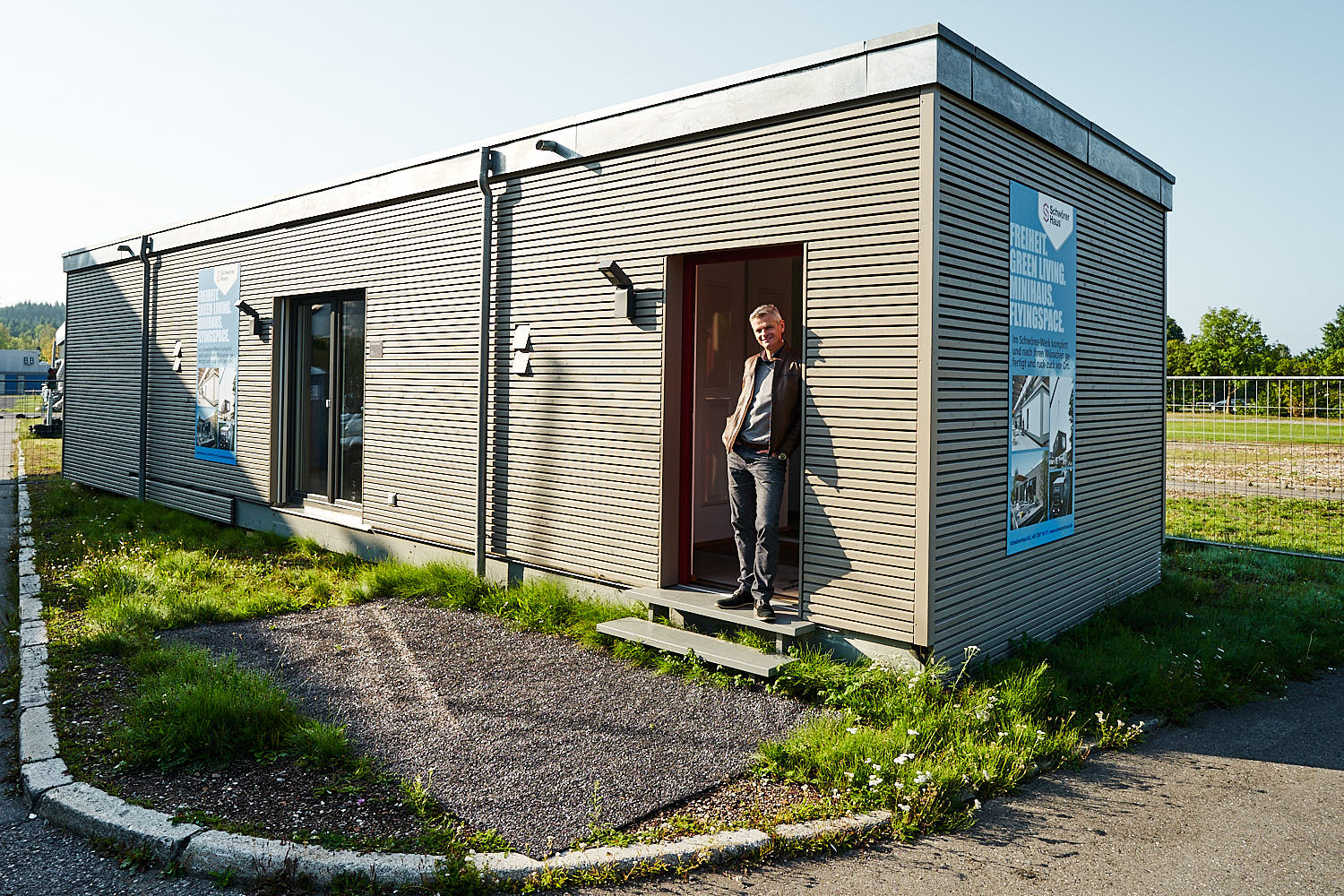 Das Interesse an den Minihäusern ist enorm, insbesondere ältere Menschen erkundigen sich nach dem ebenerdigen Wohn-Modul: „Viele Senioren bewohnen ein großes Einfamilienhaus, das OG steht leer und der Keller ist voll. Der Wohnraum wird nicht mehr benötigt, ab einem gewissen Alter reicht ein Kleiderschrank völlig aus.“ Oft unterschätzen die Interessenten jedoch den Preis, denn so einfach aus dem Regal gezogen wird das Teil natürlich nicht: „Transport, Kran, Baugenehmigung und Versorgungsanschlüsse kosten auch Geld.“ So sei die Variante mit 50 Quadratmetern je nach Ausstattung und Ausführung ab 120.000 Euro zu haben, dazu kommen noch 30 bis 40 Prozent Baunebenkosten. Was die Heizart anbelangt, gibt es in Deutschland bis 50 Quadratmeter Wohnfläche keine Vorschriften: „Da ist man völlig frei.“ Ab 50 Quadratmetern ist dann ein Technikraum notwendig.